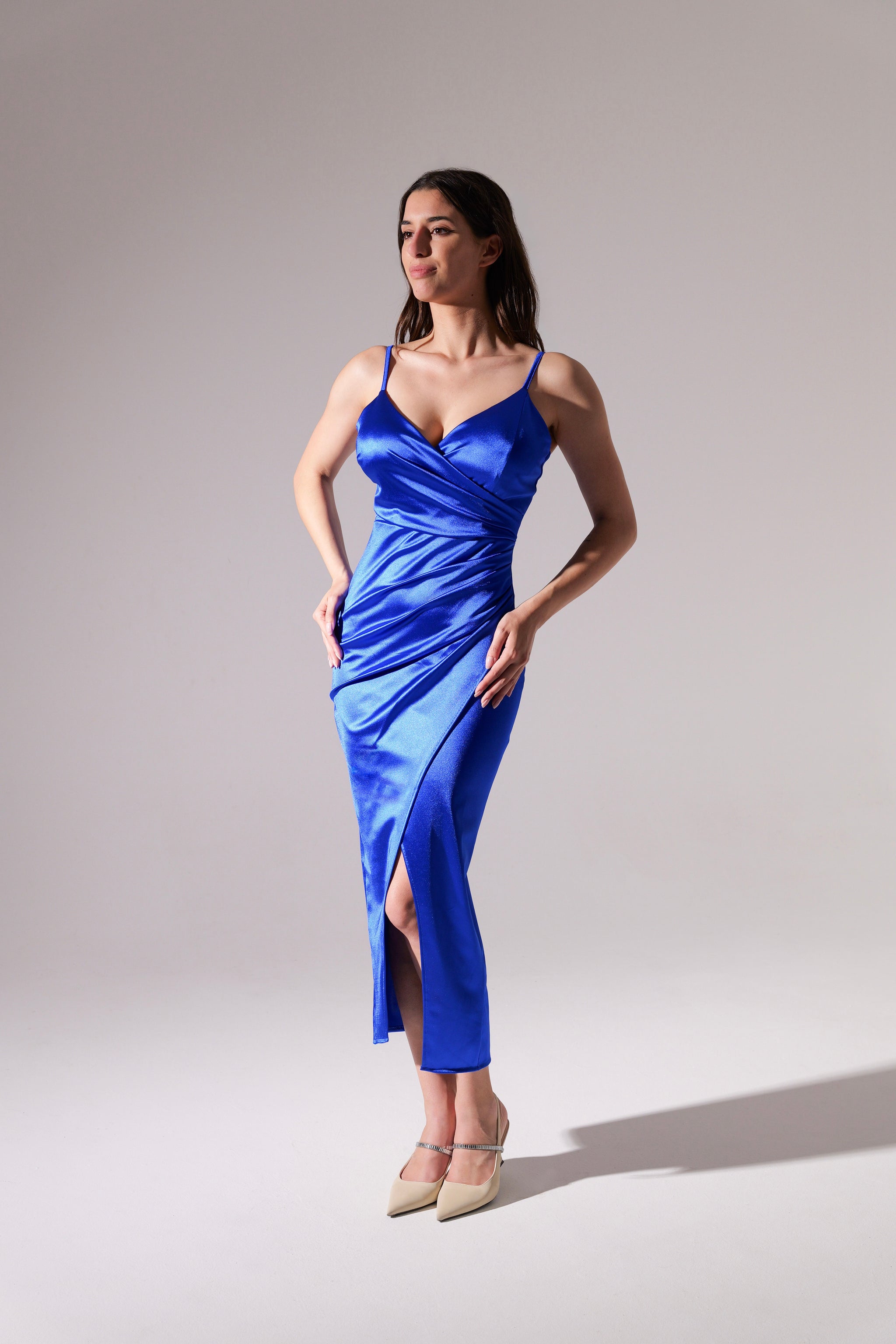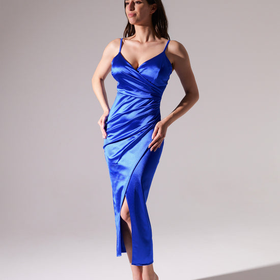 Rochie lungă din satin drapat Aurora